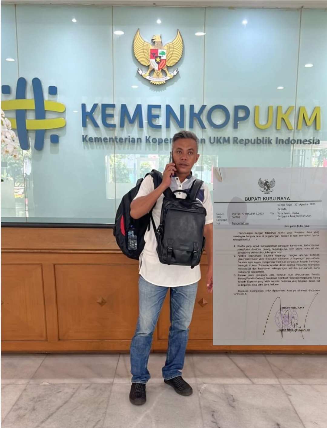 Xposetv//Kubu Raya, Kalbar, Akibat Beredarnya Surat Pemberitahuan Bupati – Sekretaris Koperasi Koperasi Jasa TKBM Khusus Kubu Raya, Benny Januardi mengecam dan meminta Bupati KKR mencabut surat pemberitahuan dengan no : 518/1821/DKUKMPP-B/2023 yang dianggap banyak merugikan banyak pihak.