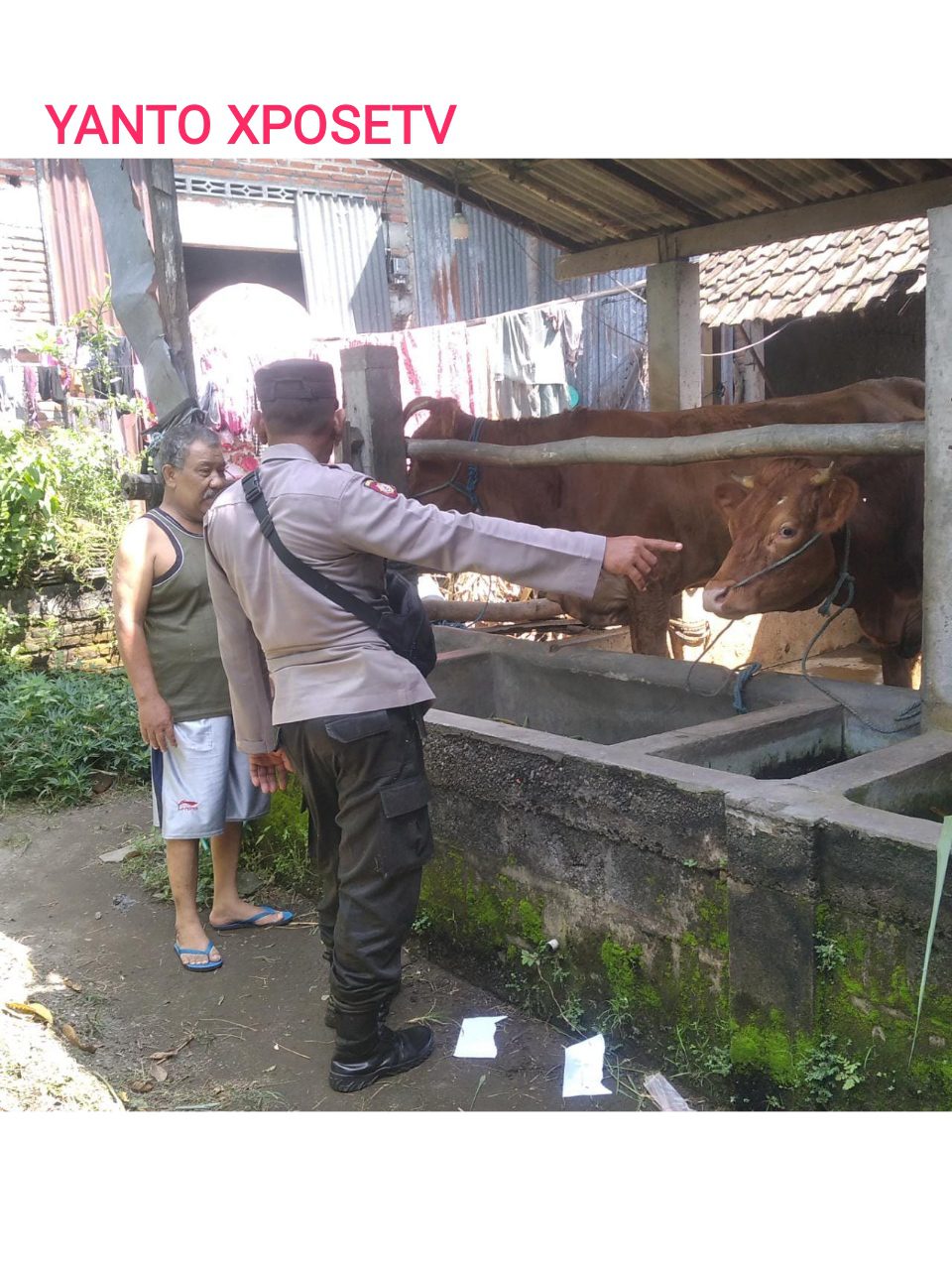 XPOSETV , KEDIRI — Antisipasi Terjadinya PMK , Giat Pengawasan Polsek Gurah, Anggota Polsek Gurah melakukan pengawasan di kandang sapi, Kamis (23/6/2022). Kegiatan itu bertujuan untuk mengantisipasi terjadinya wabah virus penyakit mulut dan kuku (PMK).