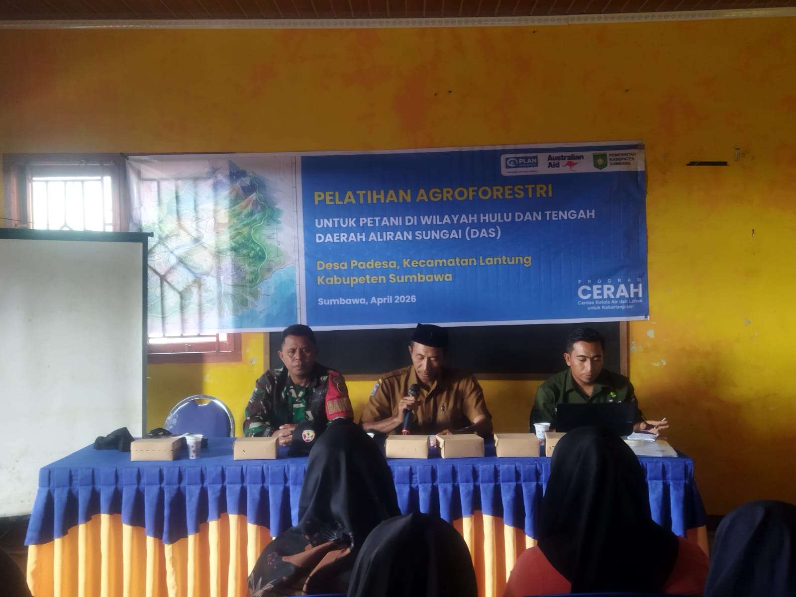 Lantung, Sumbawa — Dalam upaya mendukung pelestarian lingkungan sekaligus meningkatkan kesejahteraan petani, Babinsa Desa Padesa Koramil 1607-03/Ropang, Serka Nurdin, menghadiri dan memberikan dukungan pada kegiatan Pelatihan Agroforestri bagi petani wilayah hulu dan tengah Daerah Aliran Sungai (DAS), bertempat di Aula Kantor Desa Padesa, Kecamatan Lantung, Selasa (21/04/2026).