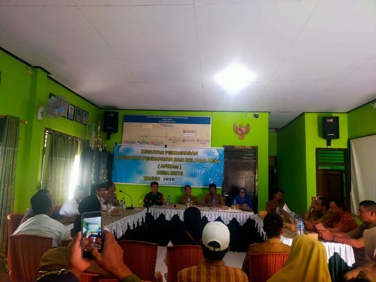 Rapat tersebut dihadiri oleh Kepala Desa Dete beserta perangkat desa, Ketua dan anggota BPD, pendamping desa, tokoh masyarakat, serta perwakilan lembaga desa lainnya. Kegiatan ini bertujuan untuk membahas secara transparan dan partisipatif rencana penggunaan anggaran desa tahun 2026 agar tepat sasaran dan sesuai dengan kebutuhan prioritas masyarakat.