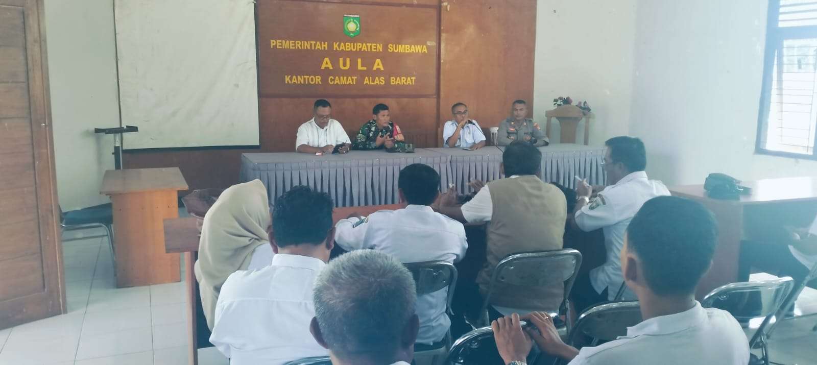 Kegiatan rapat tersebut dipimpin langsung oleh Camat Alas Barat dan dihadiri unsur Forkopimcam, para kepala desa, perwakilan instansi terkait, serta tokoh masyarakat. Rapat ini bertujuan untuk mempersiapkan rangkaian kegiatan kirab agar berjalan aman, tertib, dan sukses saat melewati wilayah Kecamatan Alas Barat.