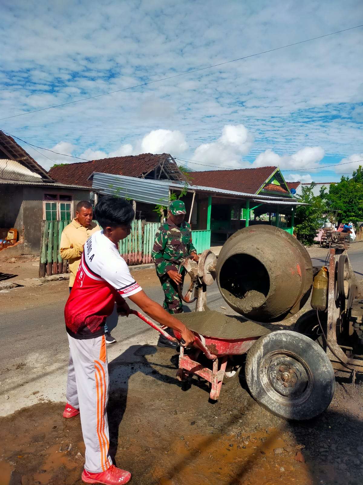 Dalam kegiatan yang dihadiri oleh warga masyarakat setempat, Babinsa dan perangkat desa bergotong royong membersihkan dan memperbaiki bangunan kantor desa. Selain itu, mereka juga melakukan pengecoran tiang garasi kantor desa untuk memastikan keamanan dan kenyamanan dalam penggunaannya.