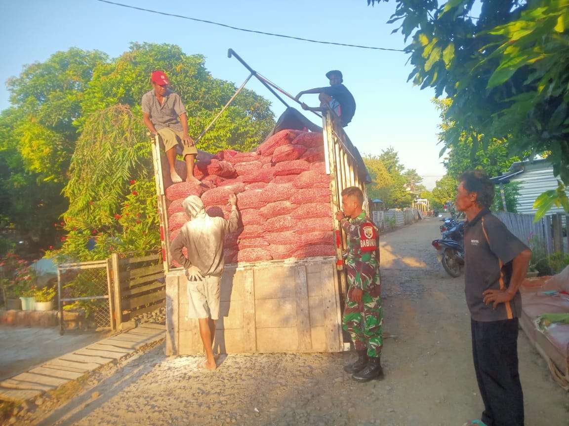 Babinsa Koramil 1607-02/Empang Mendampingi Distribusi Bibit Bawang di Desa Binaan