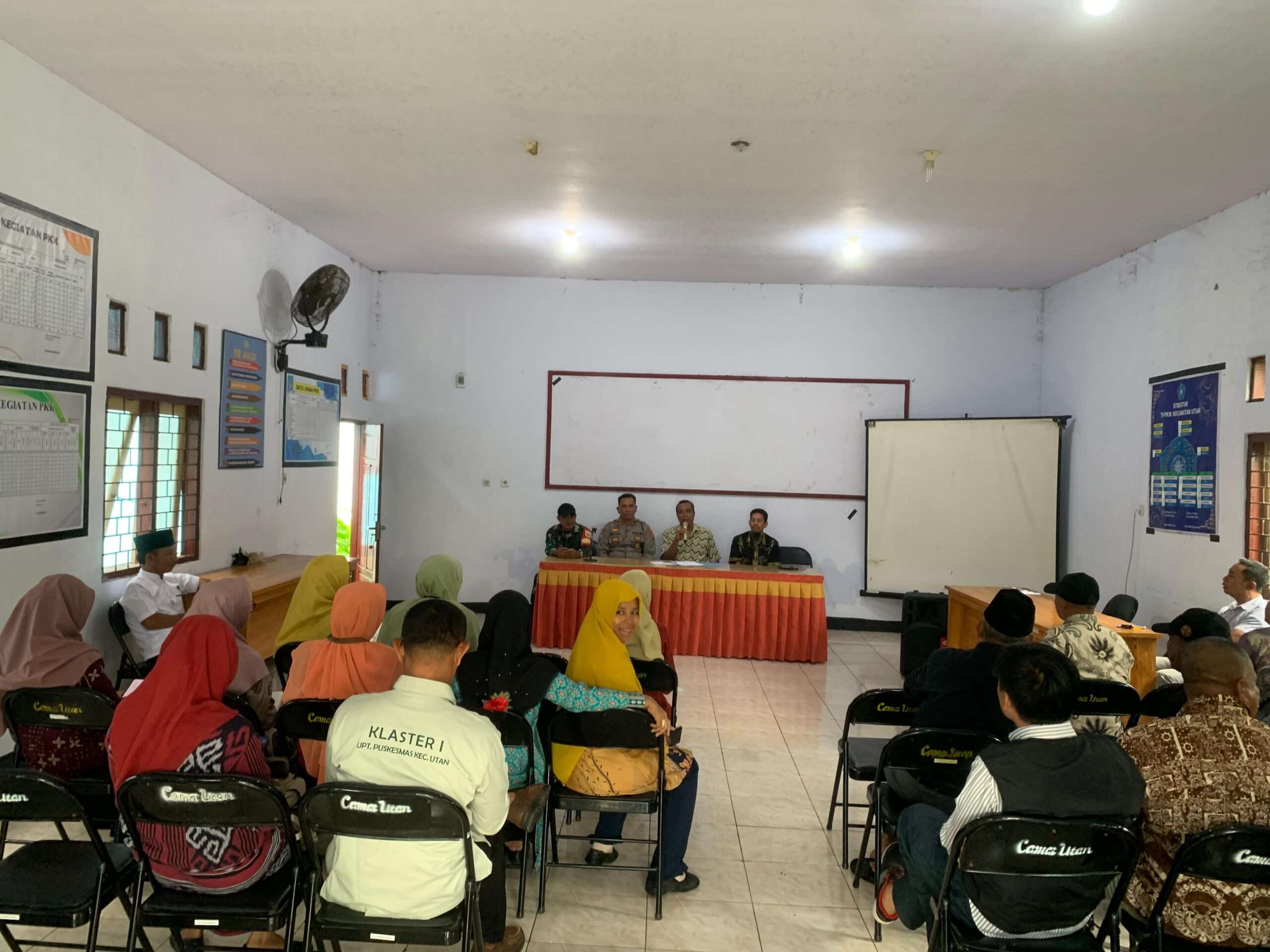 Kegiatan rapat dipimpin oleh Camat Utan, Bapak Hartono, S.H., M.Si, dan dihadiri oleh unsur Forkopimcam, para kepala desa, kepala sekolah, perwakilan instansi kesehatan, serta unsur pendidikan se-Kecamatan Utan.