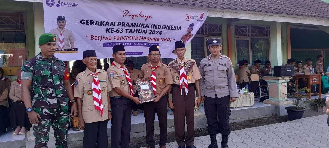 Babinsa Muer Hadiri Upacara HUT Pramuka ke-63 di SMK Negeri 1 Plampang