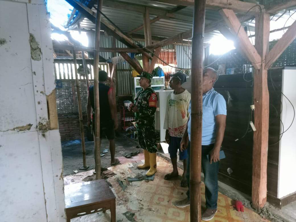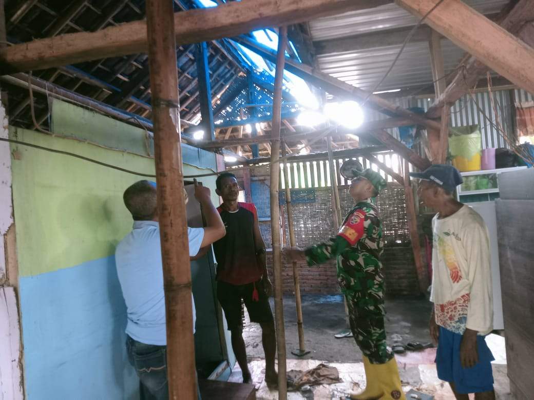 Kejadian bencana alam ini telah menimbulkan kerugian bagi sejumlah warga, termasuk salah satunya adalah Bapak Ahmad Saleh, seorang warga setempat yang rumahnya terkena dampak langsung dari hujan angin yang melanda. Tanpa membuang waktu, Babinsa Orong Bawa, bersama dengan tokoh masyarakat dan warga lainnya, segera berkumpul untuk memberikan bantuan dalam memperbaiki atap rumah yang rusak.