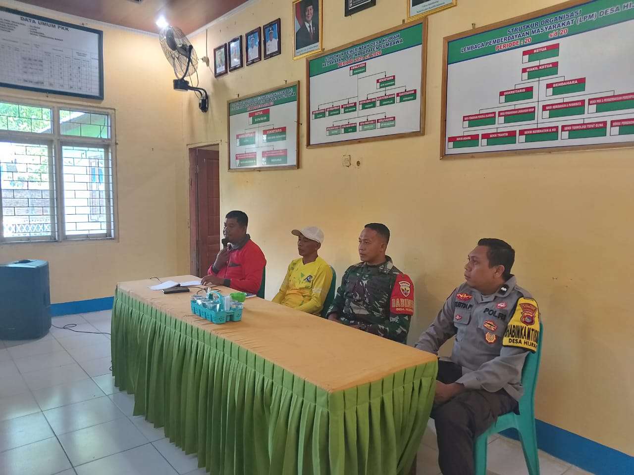Sumbawa, NTB – Babinsa Desa Hijrah Serda M. Saleh dari Koramil 1607-06/Lape Lopok menghadiri kegiatan rapat sosialisasi pupuk subsidi yang berlangsung di aula Kantor Desa Hijrah, Kecamatan Lape, Kabupaten Sumbawa, pada Jumat (28/11/2025).