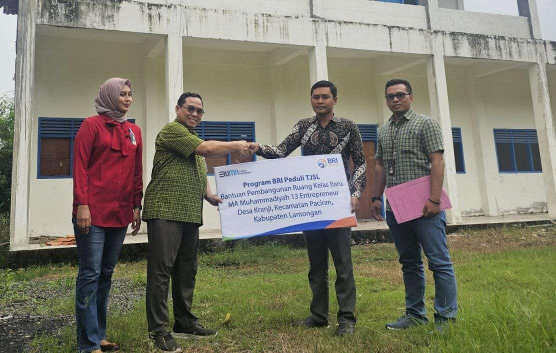 Bantuan tersebut diserahkan secara simbolis dilakukan Branch Manager BRI Lamongan Edy Hariyadi kepada Kepala Sekolah MA Muhammadiyah 13 Enterpreneur.