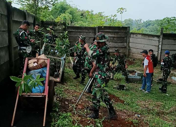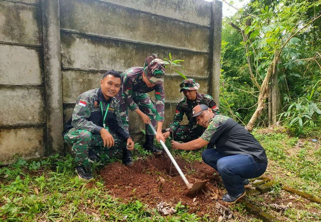 Kegiatan penanaman 85 bibit pohon di TPBU Kelurahan Muncul dipimpin oleh Letda Arh Raihan mewakilkan Komandan Batalyon Arhanud 1 Serpong Letkol Arh Roma Laksana Yudha, S.A.P., M.Sos.