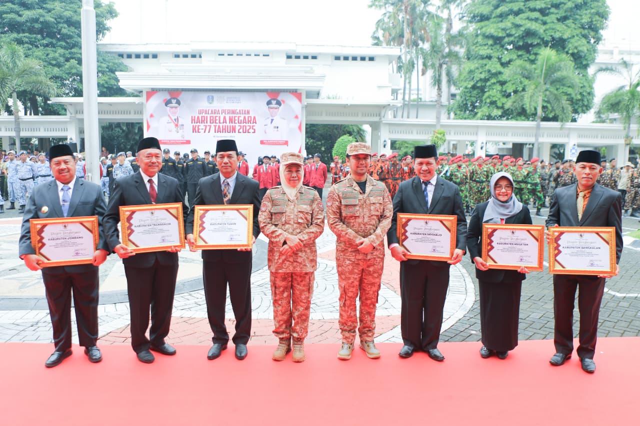 Penghargaan diserahkan kepada Kepala Badan Kesatuan Bangsa dan Politik (Bakesbangpol) Kabupaten Tuban, Yudi Irwanto, yang mewakili Bupati Tuban, dalam Upacara Peringatan Hari Bela Negara yang digelar di Halaman Kantor Sekretariat Daerah Provinsi Jawa Timur, Surabaya, Jumat (19/12).