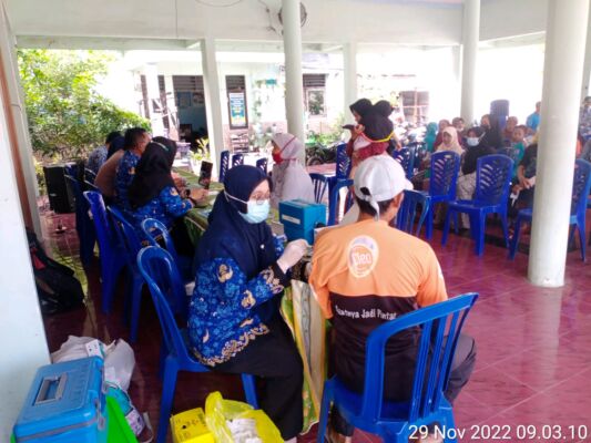 XPOSE TV LAMONGAN – Bhabinkamtibmas Polsek Karanggeneng Polres Lamongan memberikan edukasi tentang Vaksin COVID-19, khususnya soal manfaat vaksin dan program vaksinasi yang di laksanakan, Selasa (29/11/2022) pukul 09 .00 Wib
