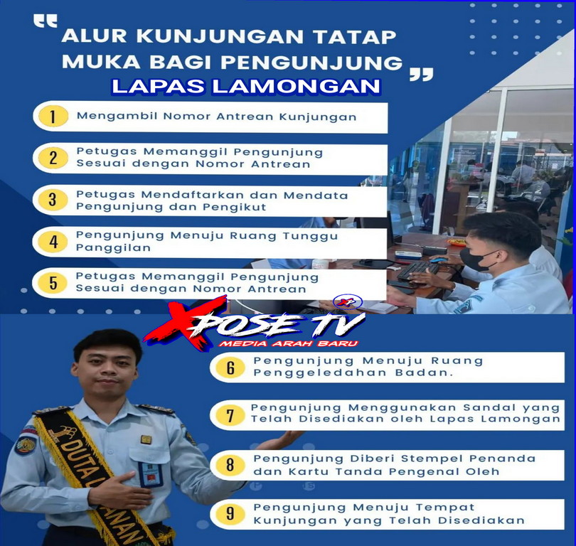 XPOSE TV LAMONGAN – Lapas Lamongan Kanwil Kemenkumham Jatim selalu berupaya memberikan pelayanan terbaiknya untuk masyarakat salah satunya dengan memberikan Layanan Kunjungan Tatap Muka. Namun tidak dipungkiri sebagian keluarga Warga Binaan Pemasyarakatan (WBP) Lapas Lamongan masih belum mengerti tentang regulasi kunjungan tatap muka yang ada di Lapas Lamongan.