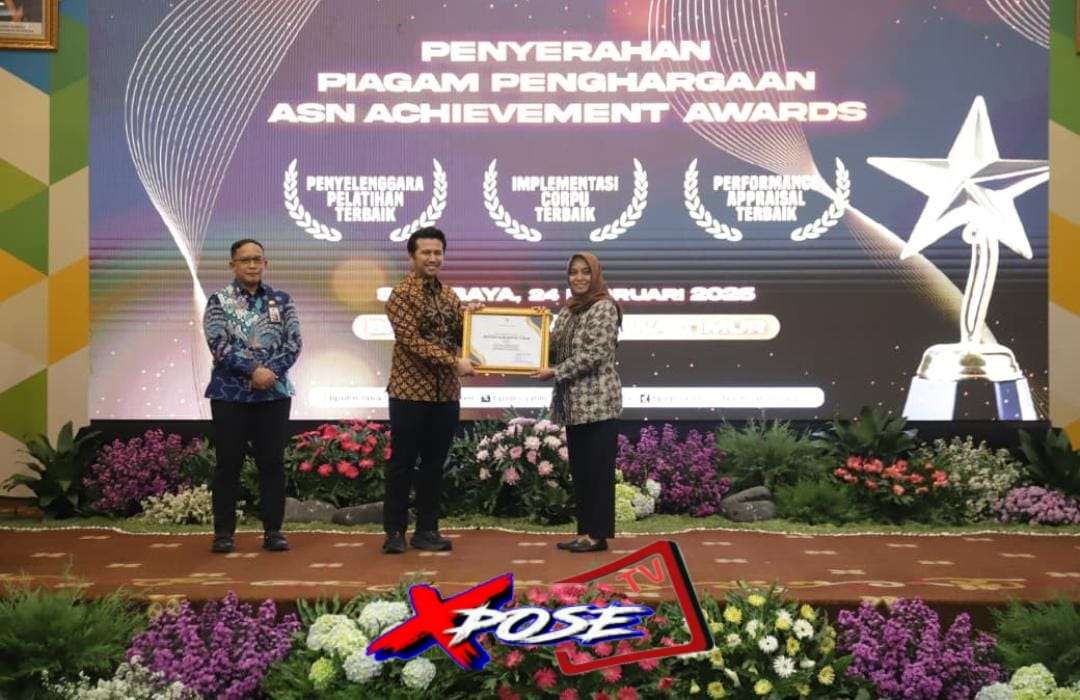 Penghargaan tersebut diserahkan langsung oleh Wakil Gubernur Jawa Timur, Emil Elestianto Dardak, kepada Kepala BKPSDM Kabupaten Tuban, Fien Roekmini Koesnawangsih, Selasa (24/02/2026) di Kantor BPSDM Jatim. Penyerahan penghargaan turut disaksikan Kepala BPSDM Jatim, Ramliyanto, dalam rangkaian acara Pembukaan Pelatihan Kepemimpinan Nasional Tingkat II Tahun 2026.