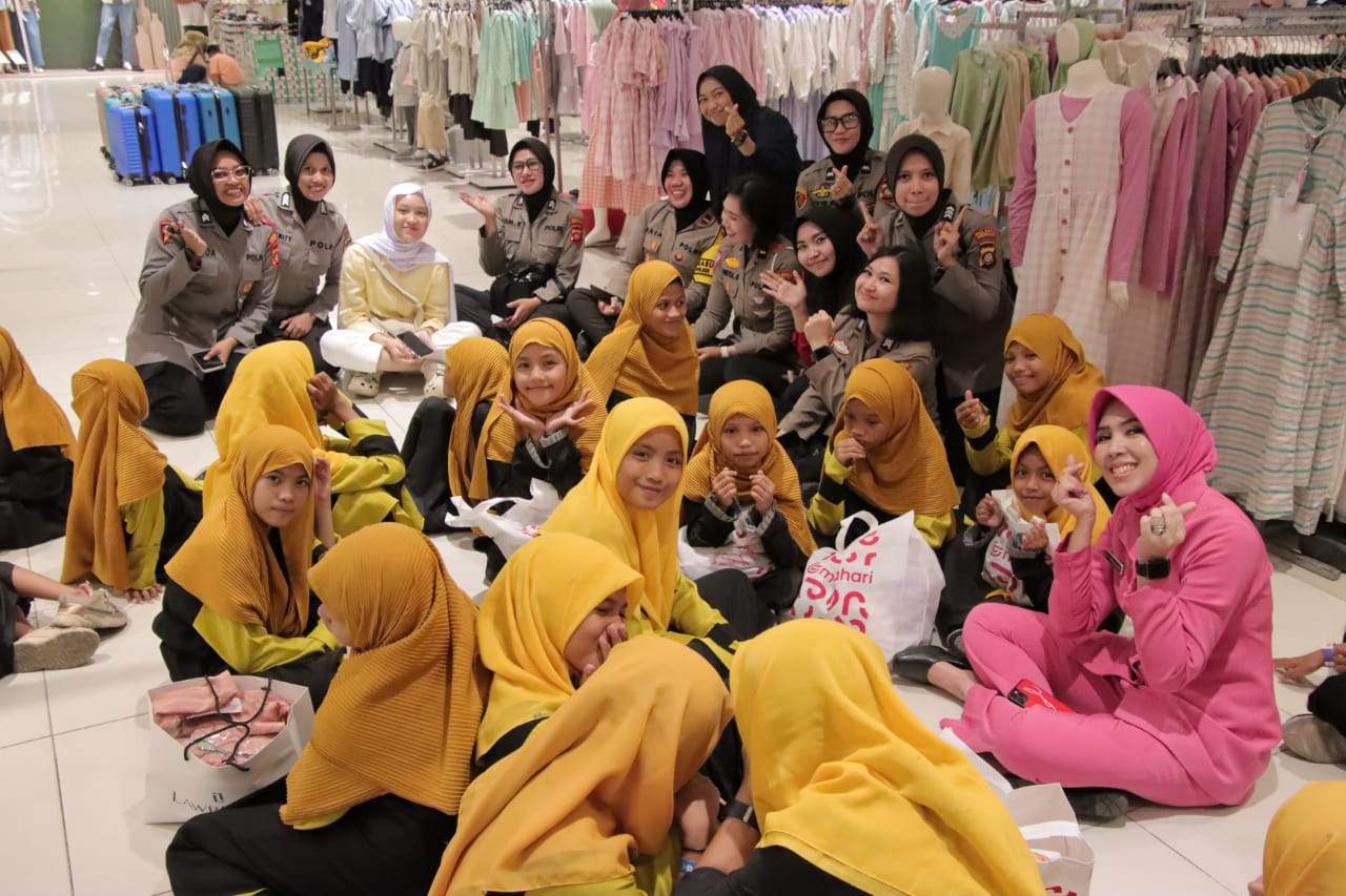 Kapolresta Gorontalo Kota Kombespol Dr. Ade Permana,S.I.K.,MH bersama dengan ketua bhayangkari cabang Kota Gorontalo Kota berbagi kebahagiaan dengan anak anak di dua panti asuhan dengan mengajak mereka membeli baju baru sesuai pilihannya di Matahari yang di Gorontalo Mall.