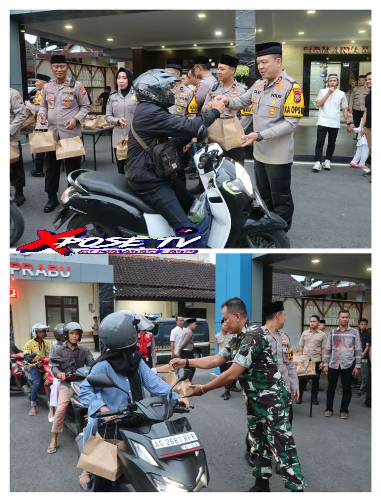 Bulan Ramadan Polres Tulungagung Bersama Kodim 0807 Merajut Kebersamaan Bagikan Takjil Kepada Warga