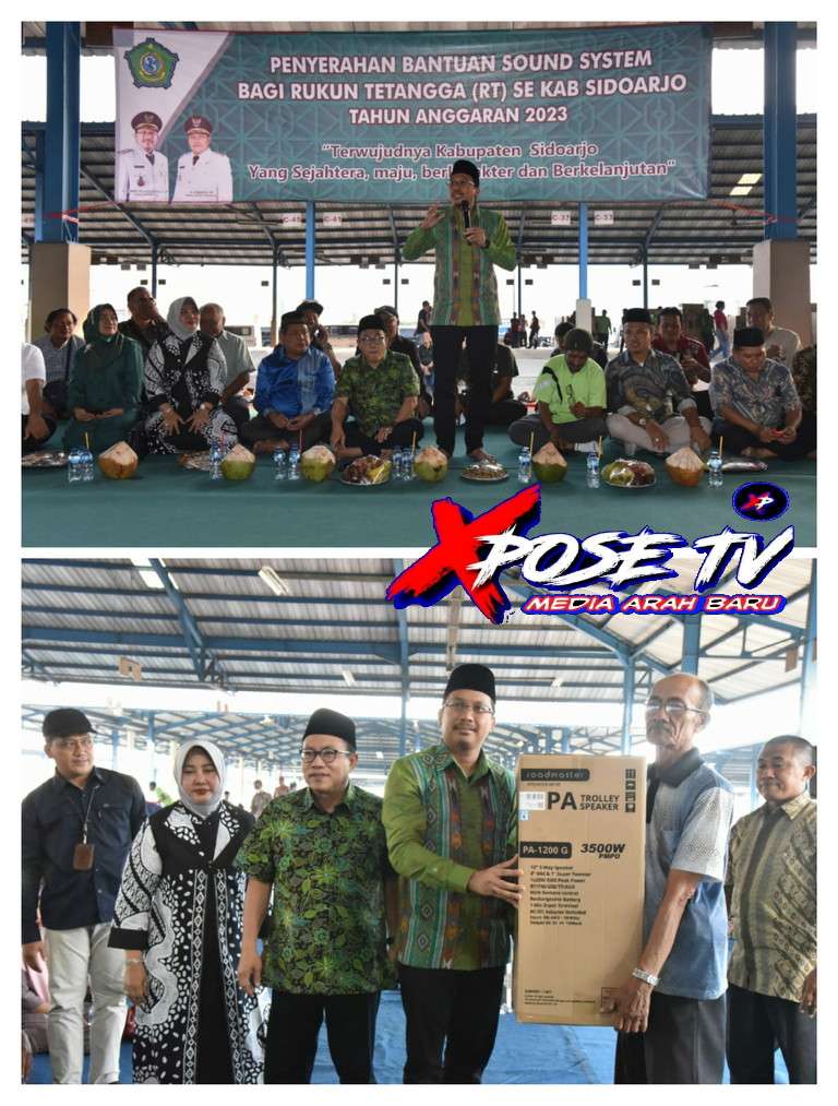 Xpose tv. Live, Sidoarjo – Secara simbolis bantuan sound system diserahkan Bupati Sidoarjo H. Ahmad Mudhlor, S.IP. Dalam kesempatan tersebut juga hadir Ketua DPRD Kabupaten Sidoarjo H. Usman dan Wakil Ketua DPRD Kabupaten Sidoarjo H. Emir Firdaus.