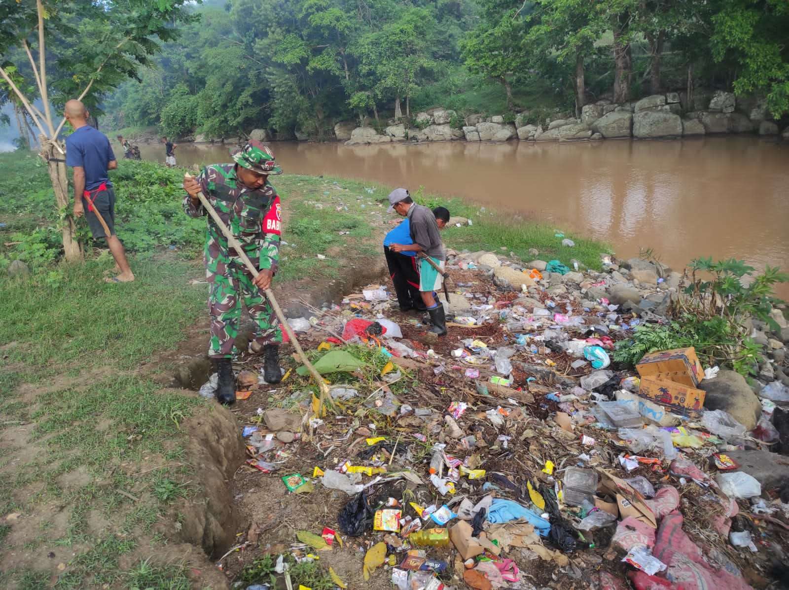 XposeTVย Lenangguar – Sumbawa|NTB, Dalam rangka mengantisipasi potensi banjir akibat luapan air sungai, Koramil 1607-03/Ropang bersama masyarakat dengan penuh semangat melaksanakan kegiatan Karya Bhakti yang bertempat di Dusun Pemangong, Desa Lenangguar, Kecamatan Lenangguar Kabupaten Sumbawa, Kamis (28/12/2023).