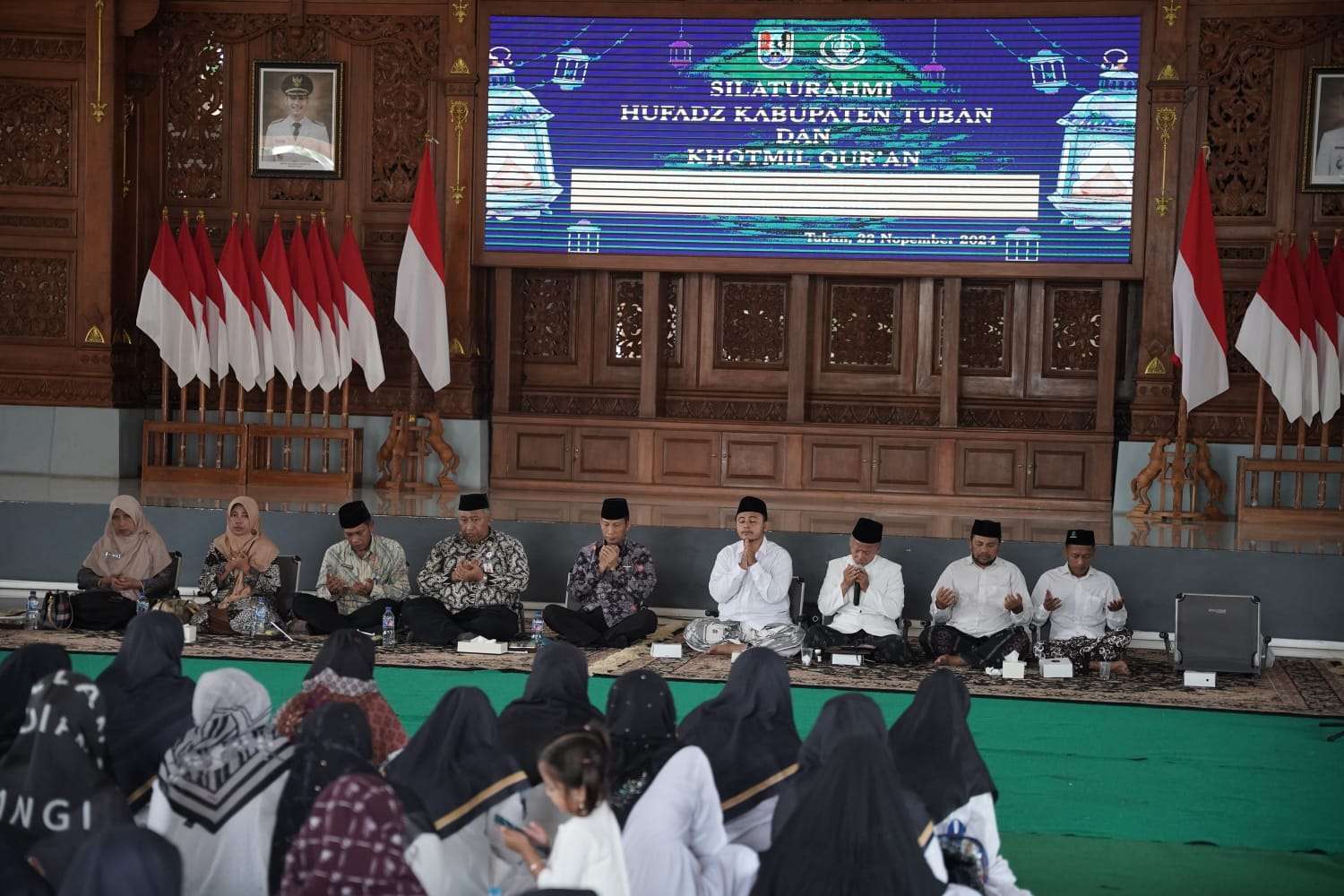 Dalam kesempatan tersebut, lebih dari 400 hafidz dan hafidzah berkumpul untuk melantunkan ayat-ayat Al-Qur’an secara serentak di Pendapa Kridha Manunggal Tuban, Jumat (22/11).