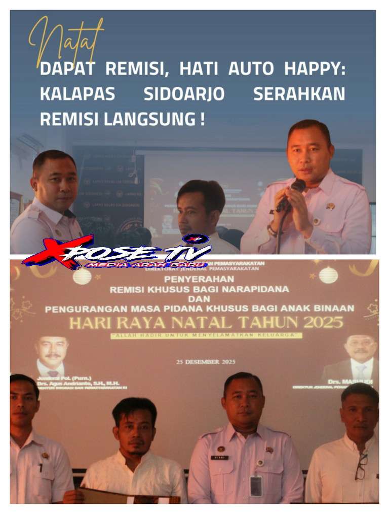 Dalam perayaan Hari Raya Natal 2025, Lapas Kelas IIA Sidoarjo Kantor Wilayah Direktorat Jenderal Pemasyarakatan Jawa Timur melaksanakan kegiatan Pemberian Remisi Khusus Natal kepada Warga Binaan Pemasyarakatan (WBP) yang berlangsung di Aula Atas Lapas Sidoarjo, Kamis (25/12/25).