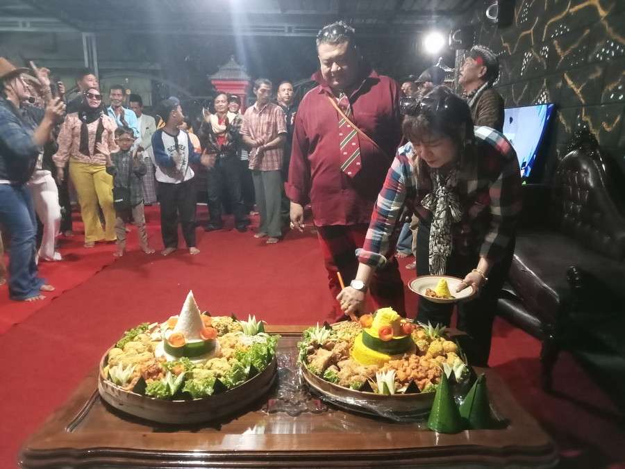 Dilanjutkan pemotongan Nasi tumpeng dilakukan oleh Bu Kristin wulandari yang berulang Tahun yang ke 48Th , Terus Bu Kristin memberikan Nasi yang pertama kepada Suaminya ( Soejoko Adi Purwanto), terus yang kedua Nasi diberikan kepada Ketua SAP ( Siswandi) dan Terus.