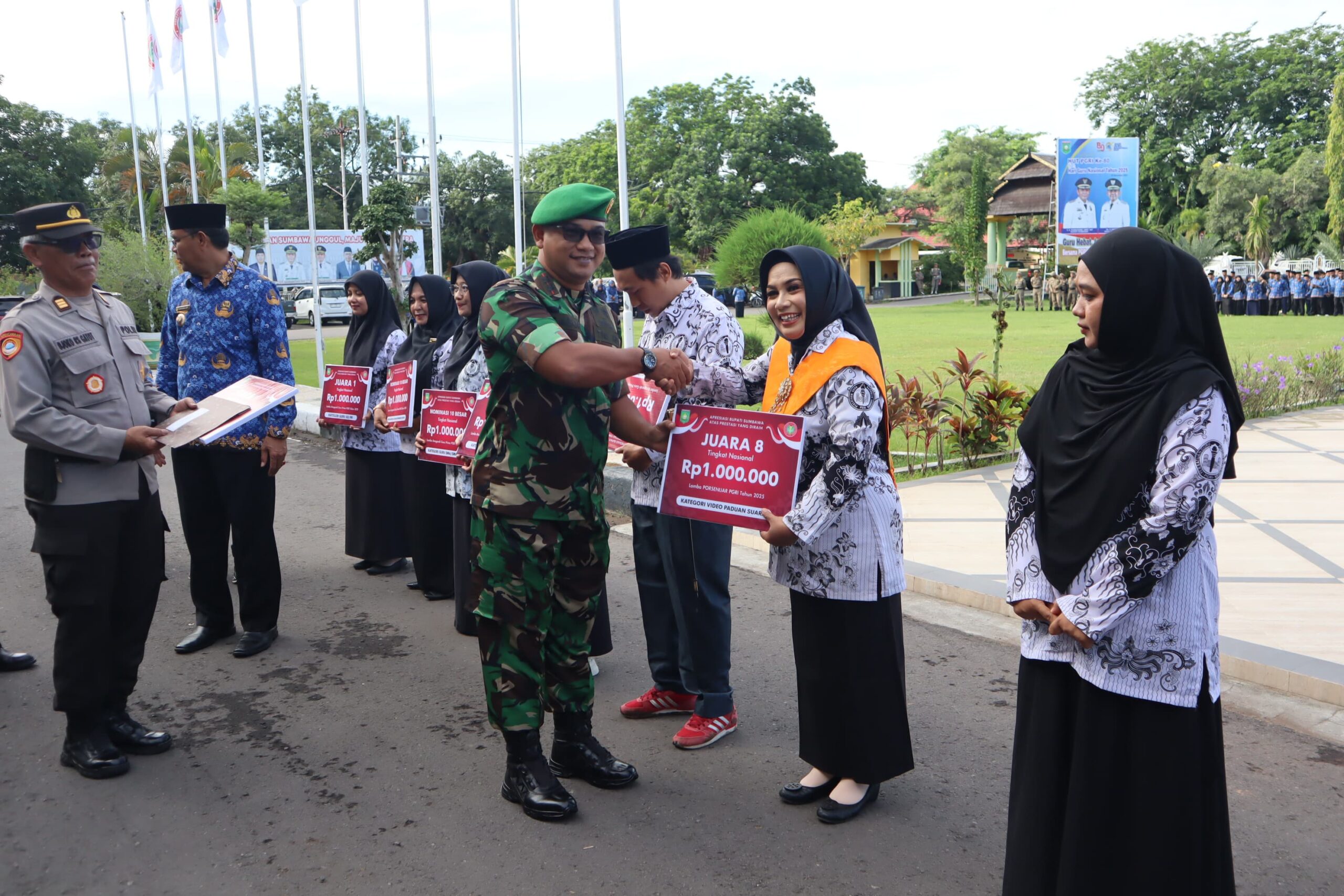 Suasana upacara berlangsung tertib, meriah, dan penuh kekeluargaan, mencerminkan kuatnya kebersamaan antara pemerintah daerah, TNI, dan insan pendidikan dalam memajukan kualitas pendidikan di Kabupaten Sumbawa. (Pendim Sumbawa).