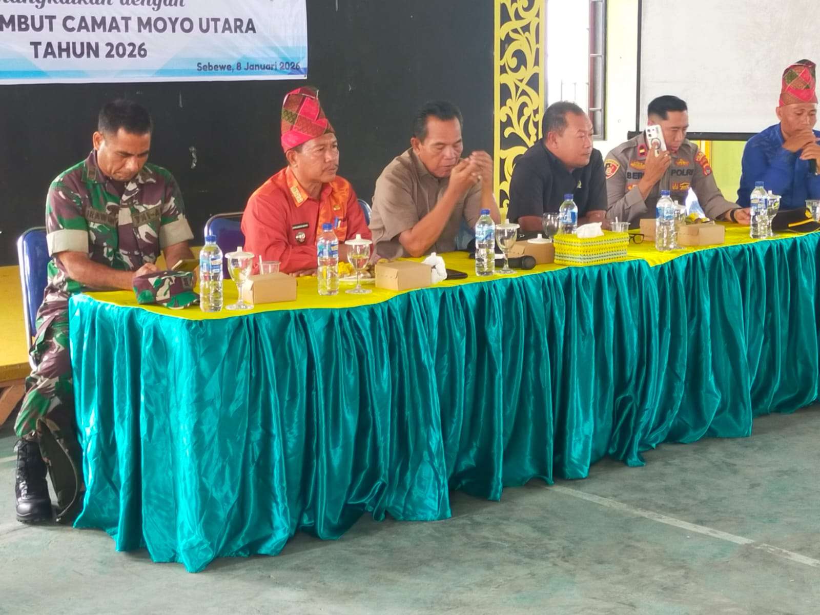 Moyo Utara, Sumbawa — Danposramil Moyo Utara Peltu Iwan Irawan menghadiri Rapat Koordinasi dan Evaluasi Kinerja Kecamatan Moyo Utara yang dirangkaikan dengan Lepas Sambut Camat Moyo Utara, bertempat di Desa Sebewe, Kecamatan Moyo Utara, Kabupaten Sumbawa, Kamis (8/1/2026).