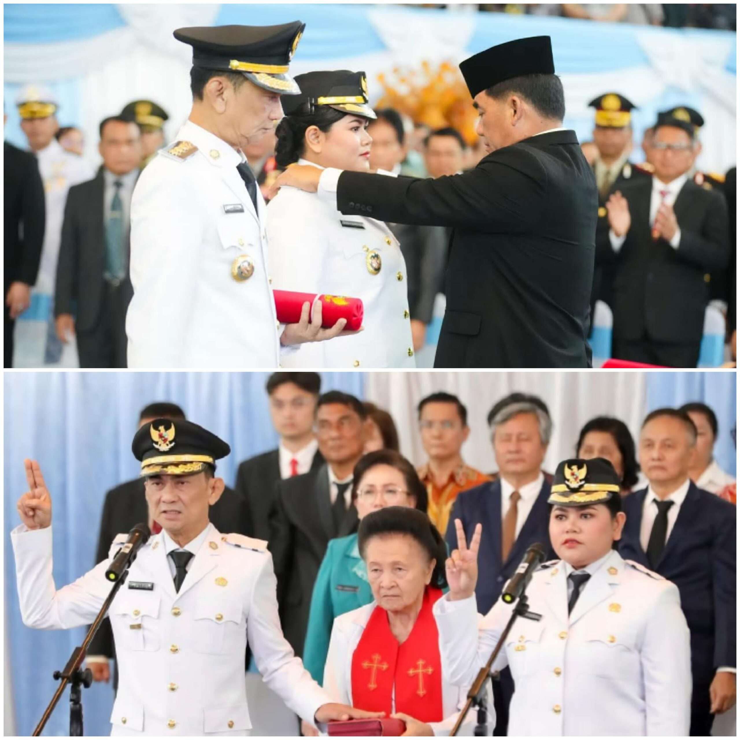 Manado, XposeTV – Dari janji ke aksi. Gubernur Sulawesi Utara, Mayjen TNI (Purn) Yulius Selvanus Komaling, SE, secara resmi melantik Welly Titah sebagai Bupati dan Anisya Bambungan, SE sebagai Wakil Bupati Kepulauan Talaud untuk periode 2025–2030. Acara pelantikan yang digelar di aula utama Kantor Gubernur Sulut pada Jumat (20/6/2025) ini menjadi momen bersejarah bagi masyarakat Talaud, menandai dimulainya babak baru kepemimpinan di wilayah terdepan NKRI tersebut.