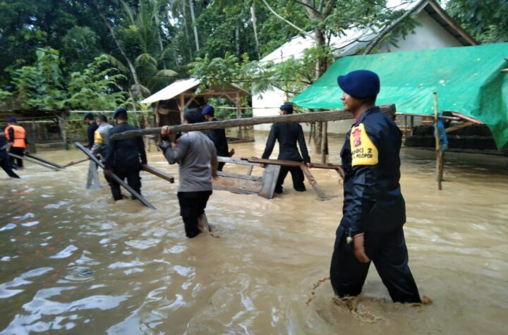 Desa Kuta Diterjang Banjir, Polisi Gerak Cepat Bantu Evakuasi Warga Yang Terdampak