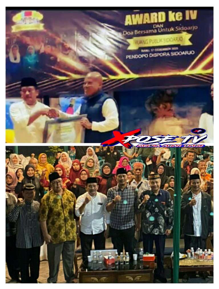 Xpose tv.Live, Sidoarjo – “Doa Bersama untuk Sidoarjo” tema yang diangkat dalam pagelaran RPS Award ke-IV Tahun 2025. Yang berlangsung di Pendopo Dinas Kepemudaan, Olahraga dan Pariwisata (Disporapar) Kabupaten Sidoarjo. Rabu (17/12/25). Rangkaian kegiatan diawali dengan pembacaan sholawat dan doa bersama yang dipimpin oleh Gus Hasan Jamil Kholil, S.Pd.,