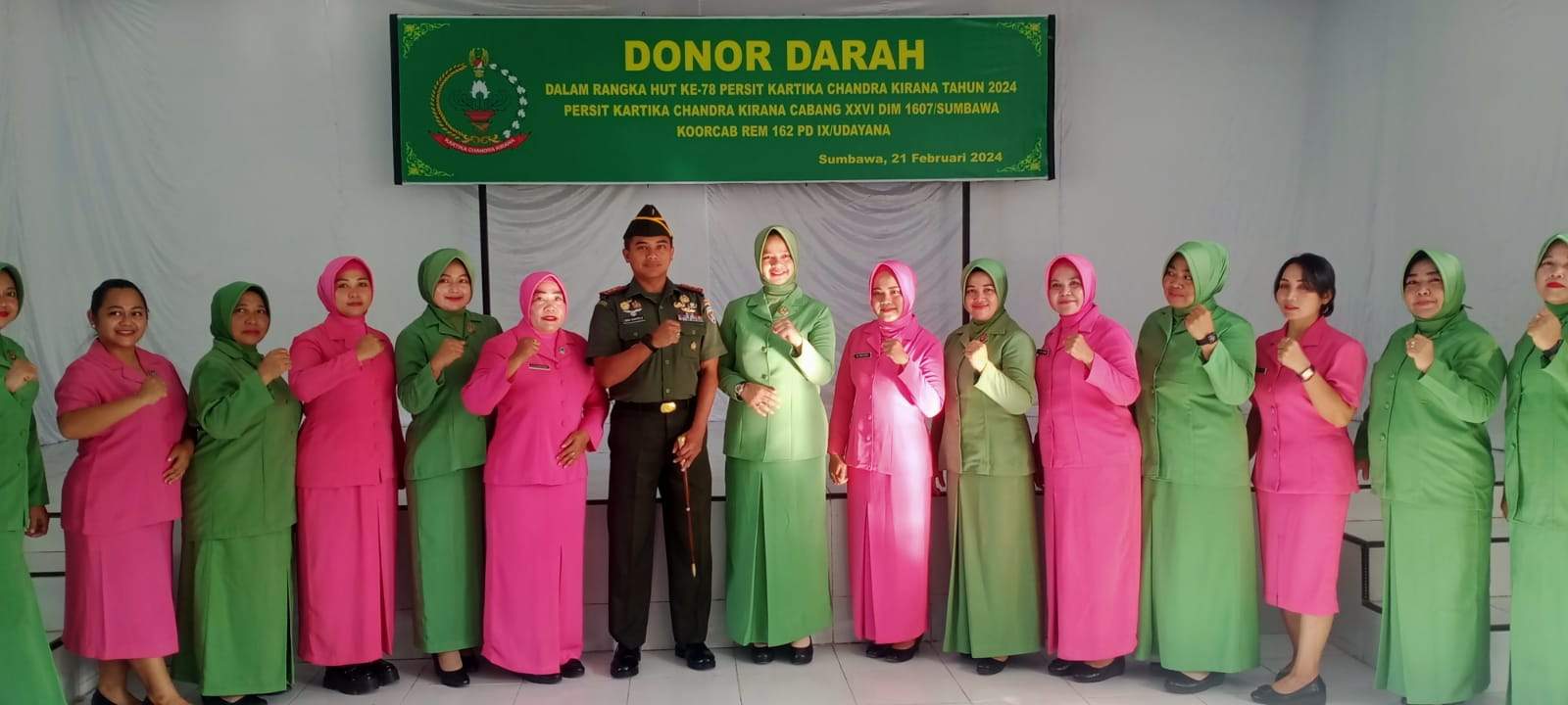 Sumbawa Besar|NTB – Dalam rangka memperingati Hari Ulang Tahun ke-78 Persit Kartika Chandra Kirana, Ketua Persit KCK Cab XXVI Dim 1607 Sumbawa menggelar kegiatan donor darah, Kegiatan ini dilaksanakan di Aula Parikesit Kodim 1607/Sumbawa, Rabu (21/02/2024).