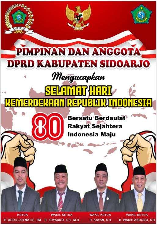 DPRD Kabupaten Sidoarjo Mengucapkan Selamat HUT Kemerdekaan Republik Indonesia ke 80 “Bersatu berdaulat rakyat sejahterah indonesia maju”