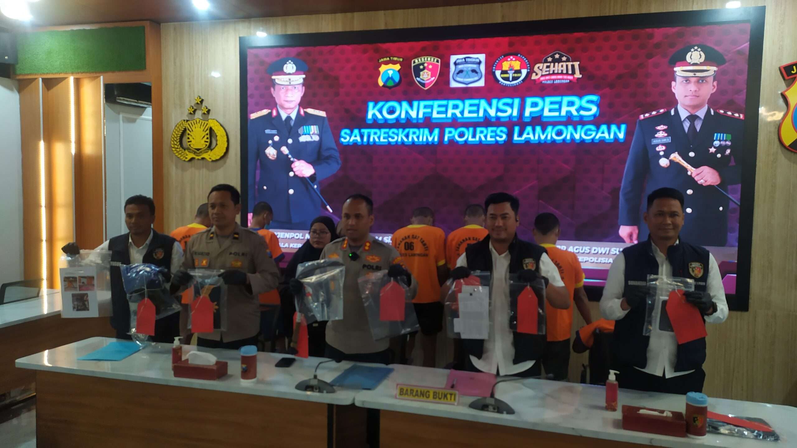 Lamongan, XPosetv.live – 02/06/2025 Polres Lamongan Gelar konfrensi Pers terhadap tindak pidana, Satreskrim Polres Lamongan bersama Polsek Babat berhasil ringkus pelaku pembacokan rombongan pemotor, 31 Mei 2025.