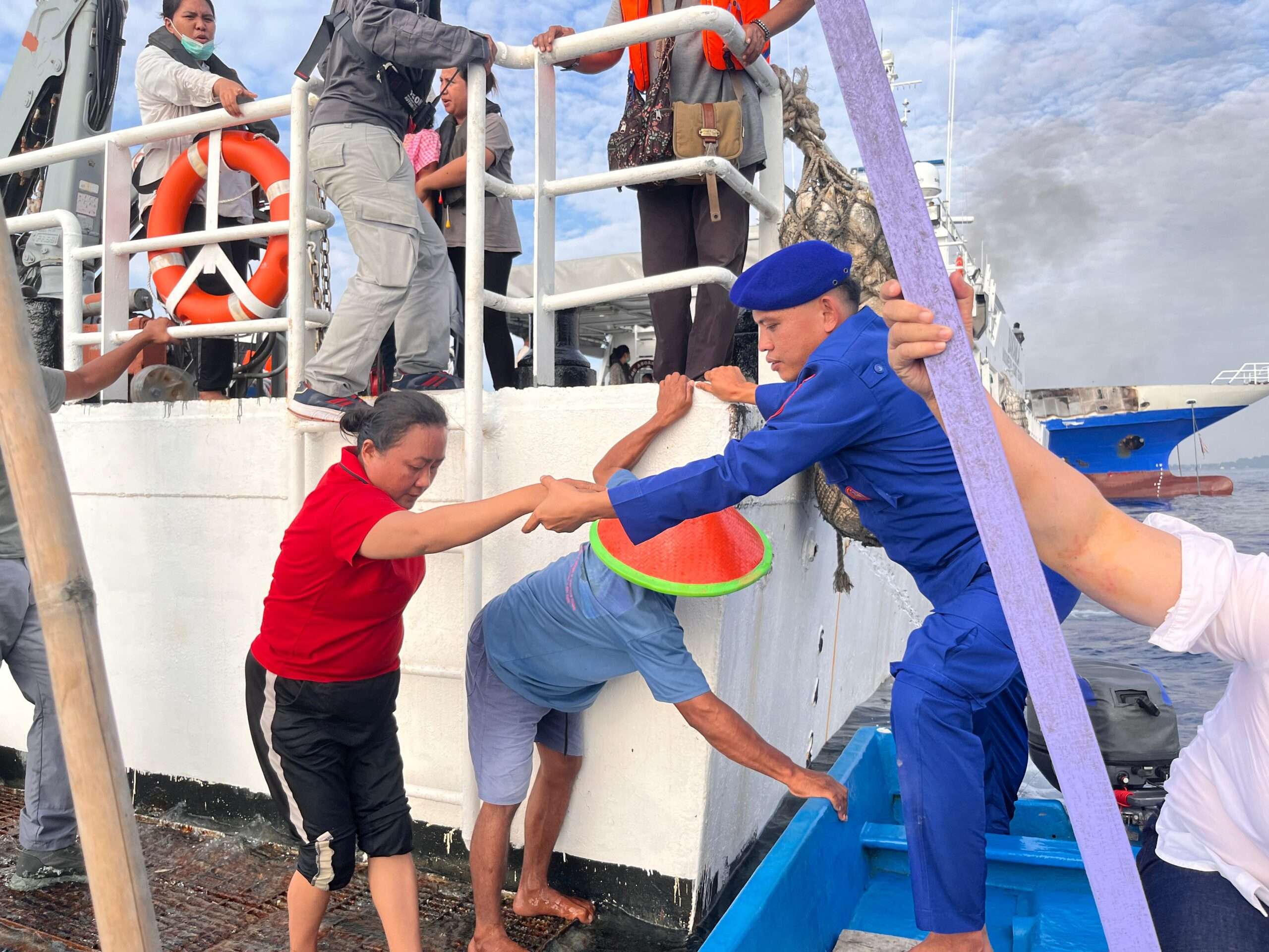 Lanjutnya, dalam proses evakuasi penumpang, menggunakan beberapa armada kapal di antaranya, KPC 1 unit, Kapal SBU 2 unit, Kapal BKO Mabes Polri 1 unit, dan KM Balam.