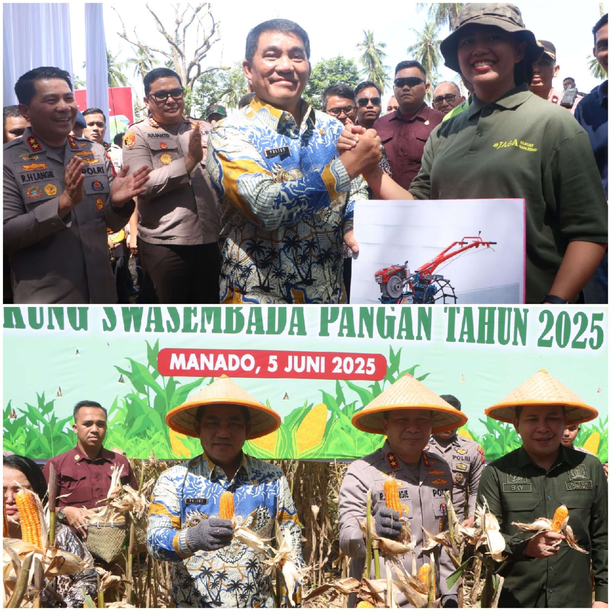 Manado, XposeTV – Gubernur Sulawesi Utara (Sulut), Mayjen TNI (Purn) Yulius Selvanus, bersama Forum Koordinasi Pimpinan Daerah (Forkopimda), melaksanakan panen raya jagung unaken di Kota Manado, Kamis (5/6/2025). Kegiatan ini merupakan bagian dari Panen Raya Jagung Serentak Kuartal II tahun 2025 dalam rangka mendukung program swasembada pangan nasional.
