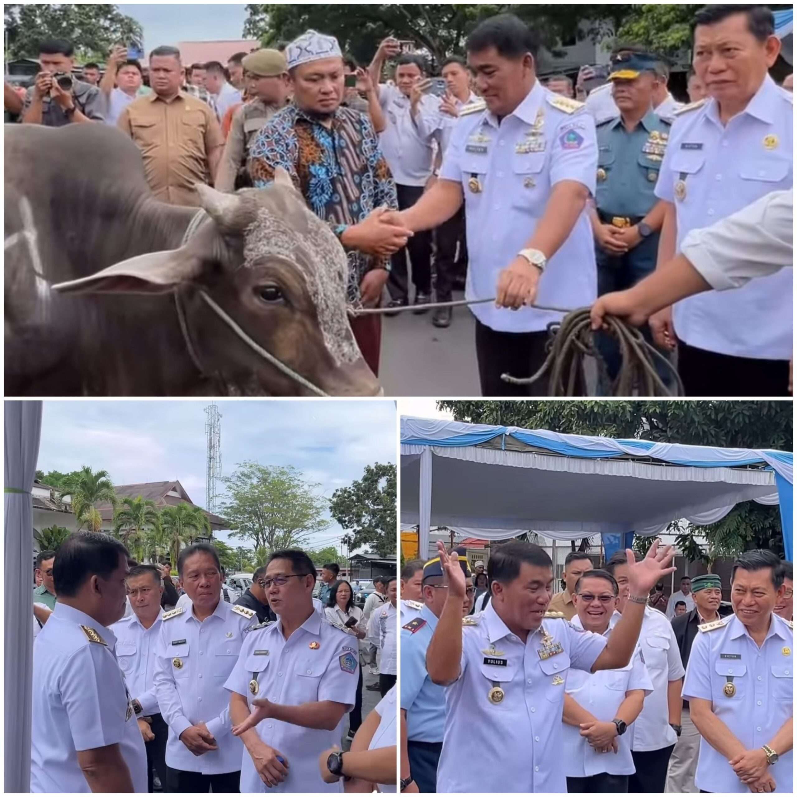 Manado, XposeTV – Gubernur Sulawesi Utara (Sulut), Yulius Selvanus, SE, secara resmi menyerahkan 66 ekor sapi kurban dalam rangka menyambut Hari Raya Idul Adha 1446 H. Acara berlangsung di halaman belakang Kantor Gubernur Sulut, Rabu (4/6/2025), dengan penekanan pada distribusi merata dan berkeadilan.