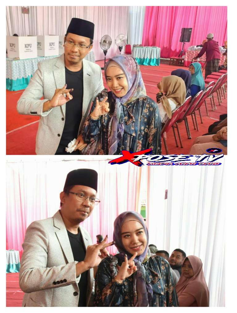 Gus Muhdlor dan Ning Sasha Tunjukkan Jari Celup Tinta, Nyoblos di TPS 09 Desa Kenongo Tulangan Kab. Sidoarjo