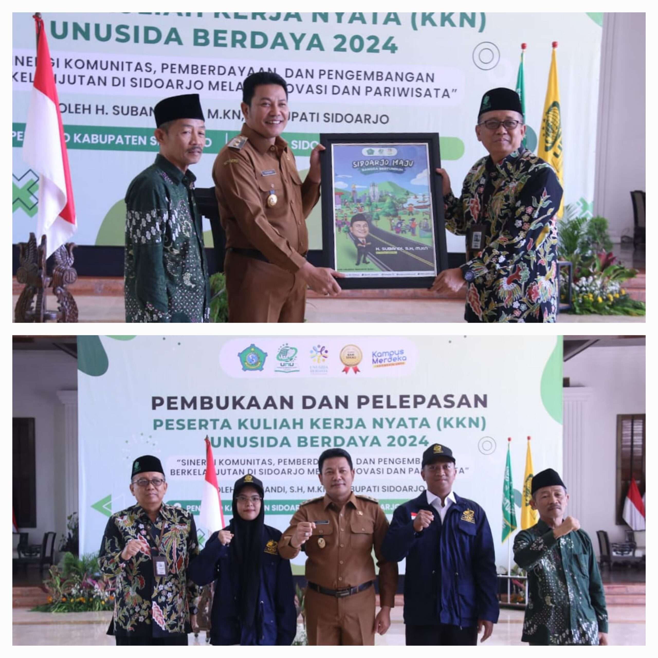 Xpose tv.Live, Sidoarjo – H.Subandi melepas sebanyak 475 Mahasiswa Universitas Nahdlatul Ulama Sidoarjo (UNUSIDA) berangkat melaksanakan Kuliah Kerja Nyata (KKN) di berbagai desa di Kabupaten Sidoarjo. Mereka dilepas oleh H.Subandi Plt Bupati Sidoarjo di Pendopo Delta Wibawa, Senin (22/07/24).