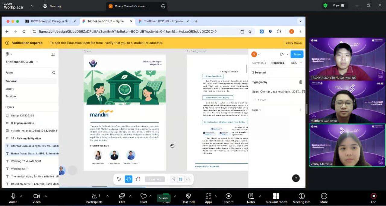 Tantangan terbesar yang dihadapi tim ini adalah mendalami topik green banking, yang berada di luar fokus utama studi mereka. Namun melalui riset mendalam terhadap industri perbankan, laporan keberlanjutan, data pasar, serta benchmarking terhadap program keuangan berkelanjutan global, TrioBeken berhasil merancang strategi yang visioner sekaligus aplikatif.