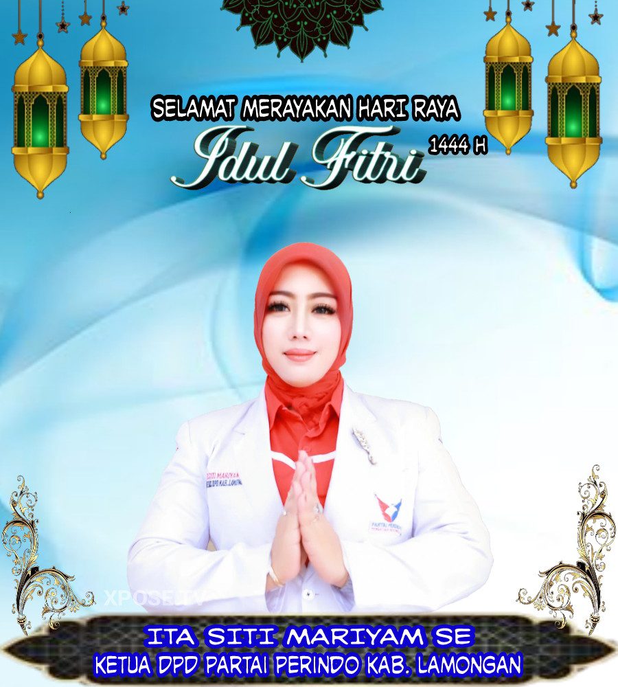 Pada suasana lebaran yang penuh keberkahan ini, ku sampaikan permohonan maaf yang sedalam-dalamnya dari lubuk hati paling dalam. Semoga maafku dan maafmu memberi kedamaian dalam kehidupan kita. Selamat Hari Raya Idul Fitri 1 Syawal 1444 H. ITA SITI MARIYAM SE Ketua DPD Partai Perindo