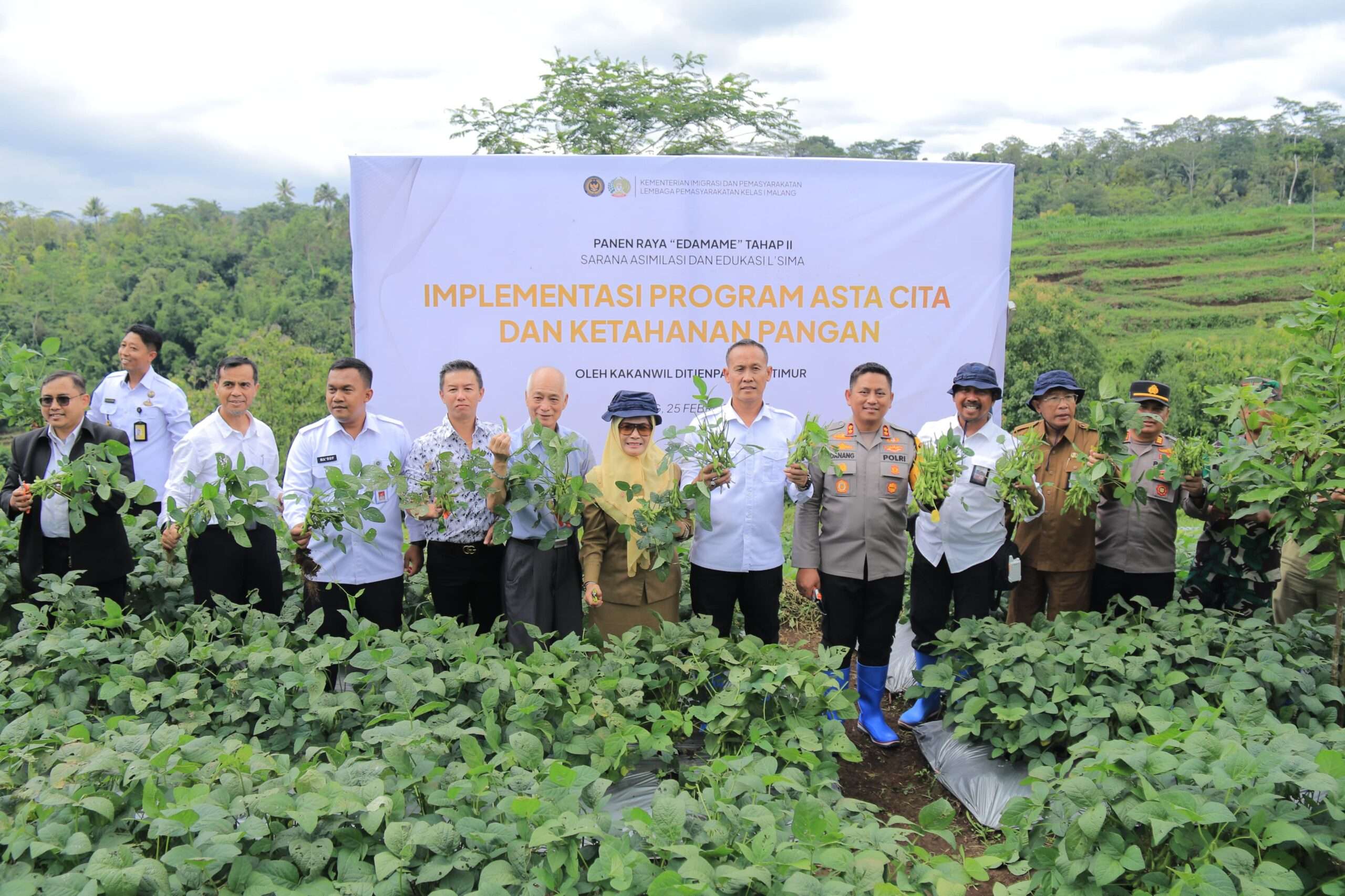 Puncak acara diisi dengan panen raya edamame di lahan SAE Lapas Malang. Dengan target hasil panen diperkirakan mencapai 6-9 kuintal, kegiatan ini menjadi bukti nyata keberhasilan program pembinaan berbasis pertanian.