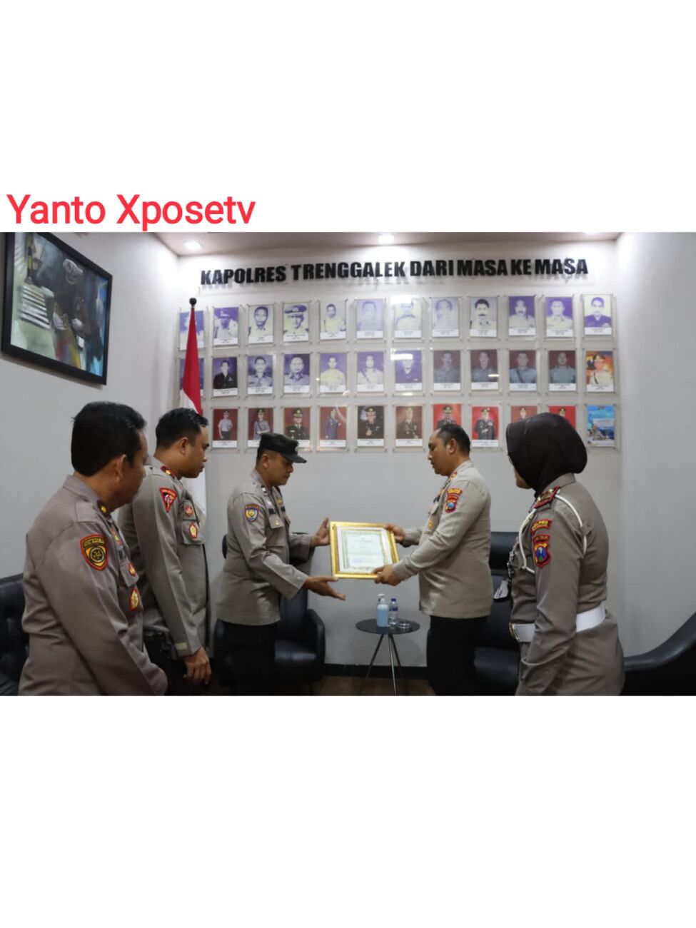 Penyerahan penghargaan diserahkan langsung oleh Kapolres Trenggalek di ruang R. Roestamadji disaksikan oleh sejumlah pejabat utama Polres Trenggalek. Rabu, (29/6).