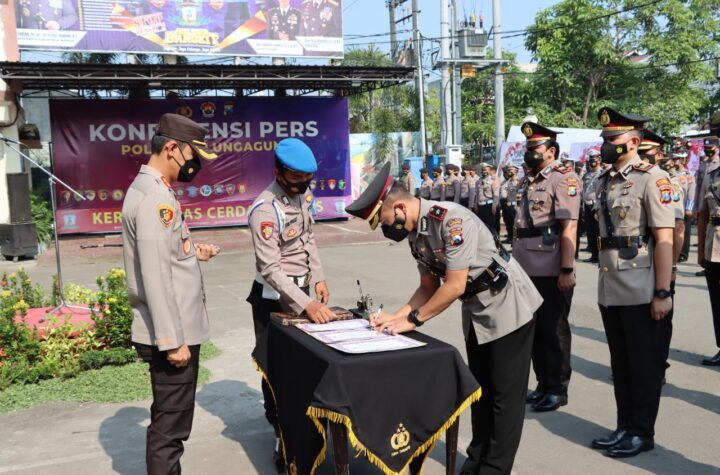 Kapolres Tulungagung Pimpin Upacara Sertijab Wakapolres, Kasat Reskrim dan 7 Kapolsek di Jajaran Polres