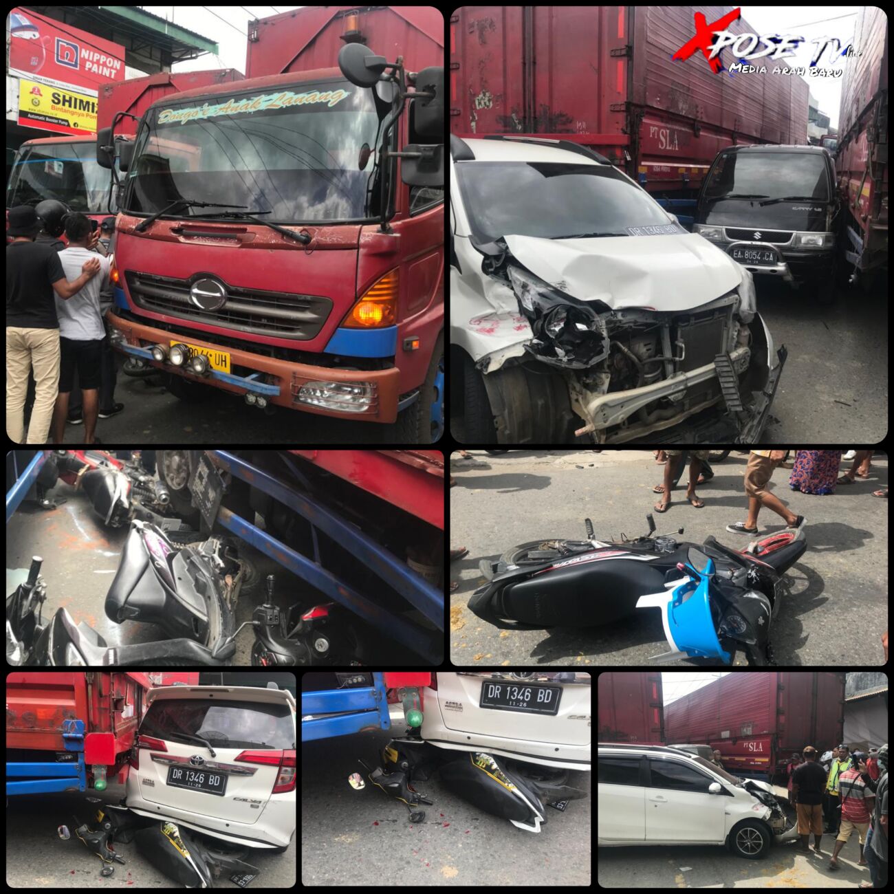 XPOSE TV. SUMBAWA – NTB, Karena Rem Blong Akibatkan Kecelakaan Beruntun, Diduga karena Rem Blong, kecelakaan beruntun terjadi di Jalan Lintas Sumbawa-Tano, tepatnya di simpang terminal depan Toko Sinar Terang Desa Dalam, Kecamatan Alas, Kabupaten Sumbawa.
