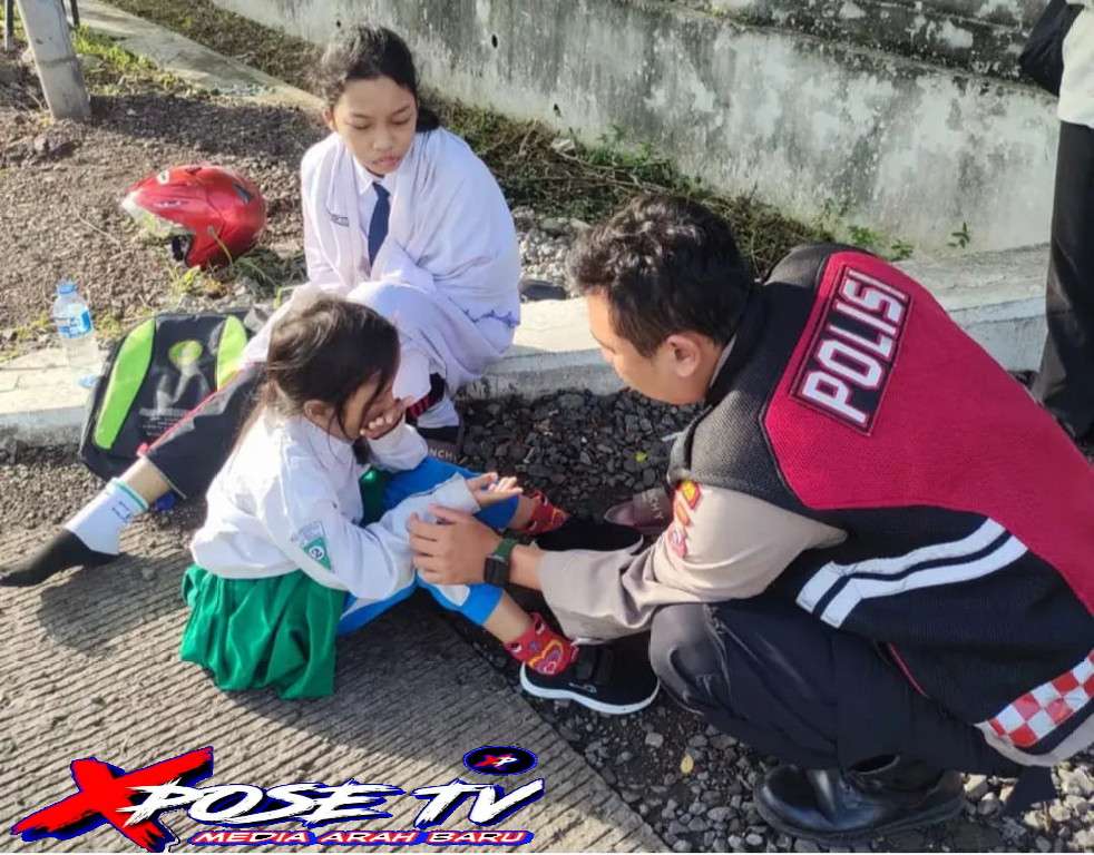 Peristiwa tersebut terjadi ketika anggota kepolisian yang tengah melaksanakan tugas rutin melihat seorang anak sekolah bersama pengendara sepeda motor terjatuh di pinggir jalan. Mengetahui kejadian itu, petugas langsung menghampiri korban untuk memberikan pertolongan pertama dan memastikan kondisi anak dalam keadaan aman.