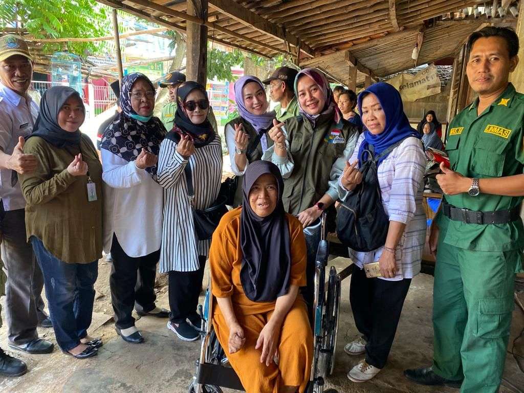 XposeTV,KOTABEKASI – Ketua Tim Penggerak PKK Kecamatan Jatiasih Ita Ashari salurkan bantuan Kursi Roda. Prosesi penyerahan dilakukan di rumah penerima manfaat, Risah warga KP Benda, RT 003/001, Jatirasa, Jatiasih, Kota Bekasi.