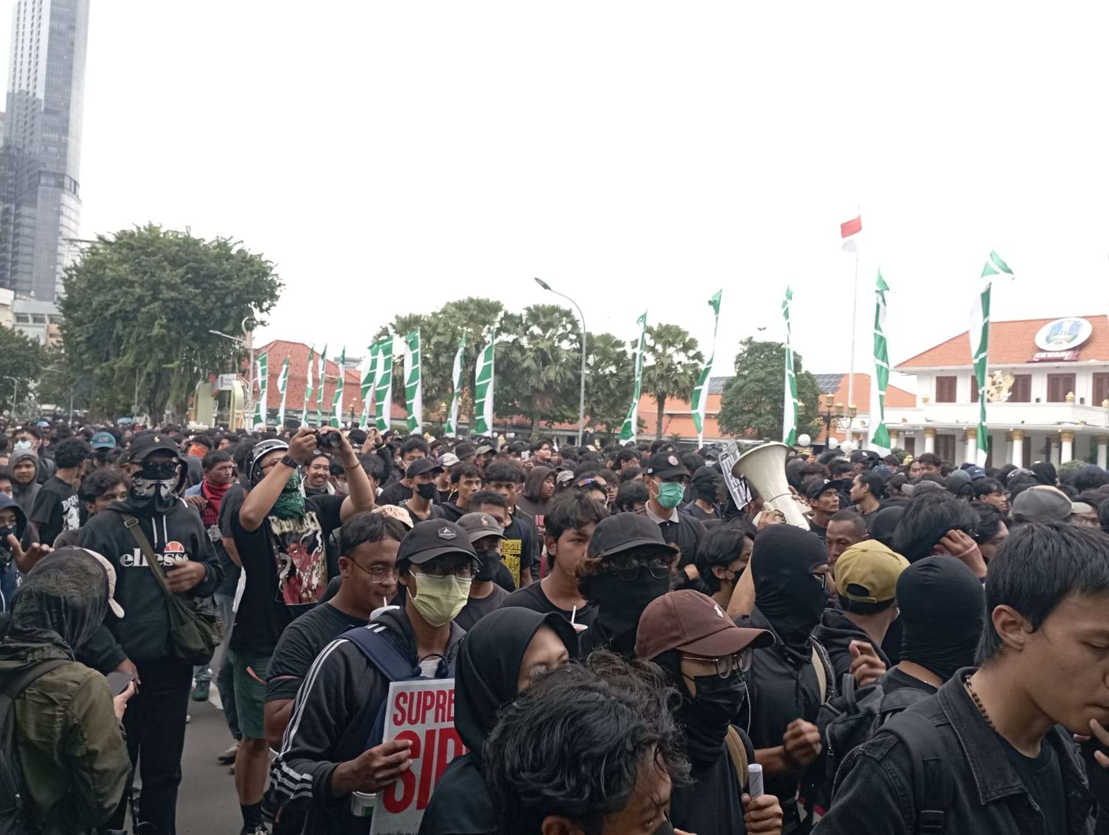 Sekitar pukul 18.28 WIB, Rama Indra yang saat itu berada di pinggir jalan sisi samping belakang aparat, tengah merekam pembubaran aksi.