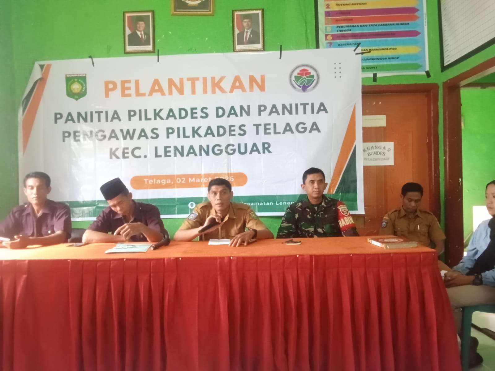 Lenangguar, Sumbawa – Dalam rangka memastikan seluruh tahapan Pemilihan Kepala Desa (Pilkades) berjalan aman, tertib, dan kondusif, Babinsa Desa Telaga Koramil 1607-03/Ropang Sertu Kholil, menghadiri sekaligus melaksanakan monitoring kegiatan pelantikan Panitia dan Pengawas Pemilihan Kepala Desa Telaga yang digelar di Aula Kantor Desa Telaga, Kecamatan Lenangguar, Senin (2/3/2026).