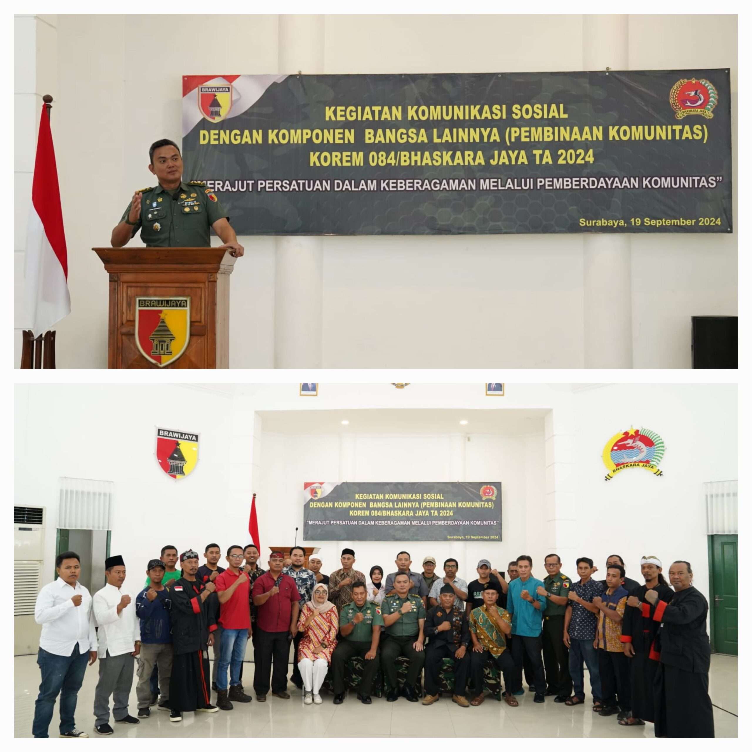 Xpose tv.Live, Surabaya – Komunikasi Sosial (Komsos) dengan komponen bangsa yang digelar Korem 084/Bhaskara Jaya di Aula Bhaskara. Kamis (19/9/24).