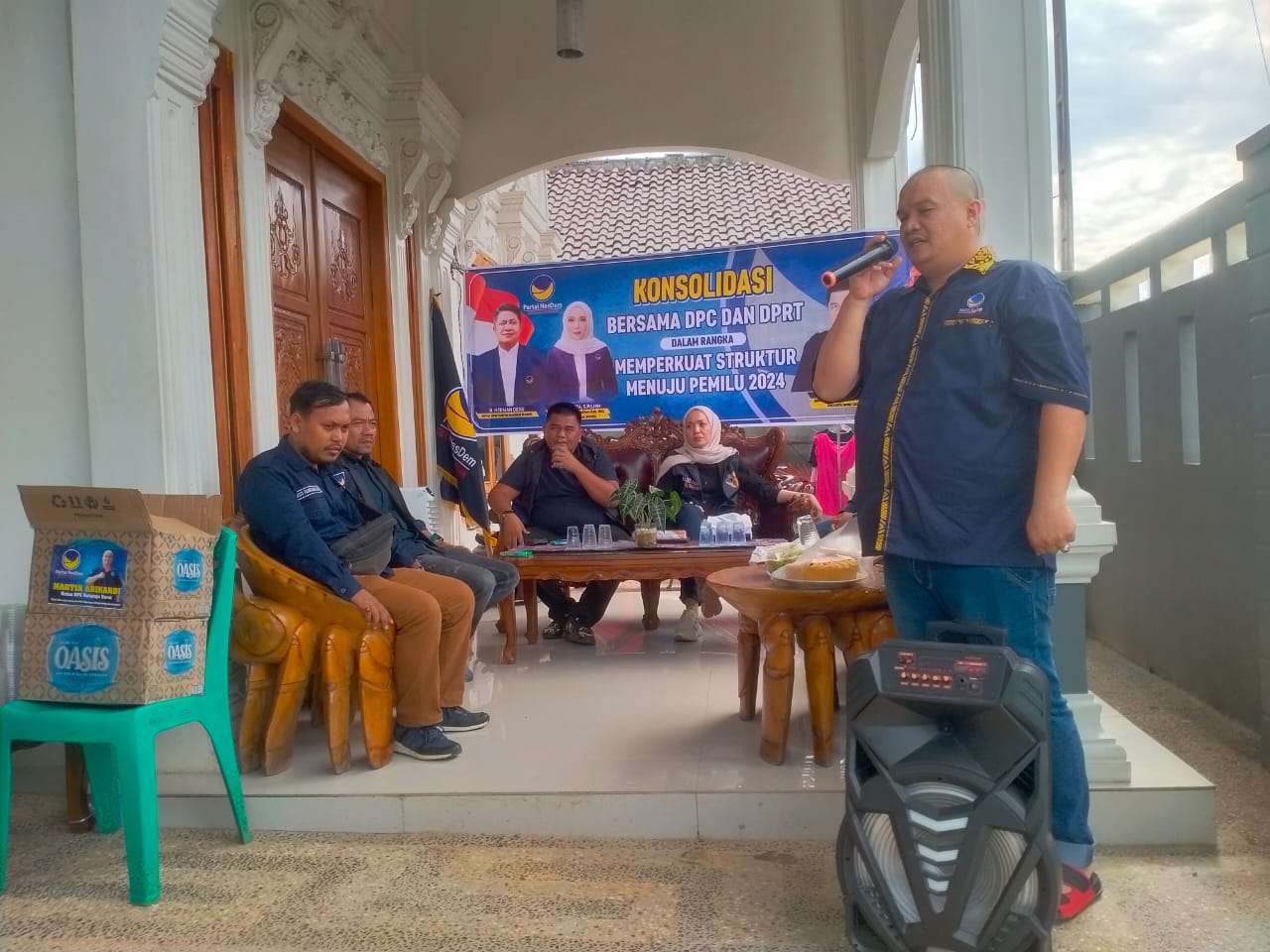 Ketua DPC Partai NasDem Kabupaten OKU Kecamatan Baturaja barat Martin Arikardi mengadakan konsolidasi kali ini lebih menekankan pada upaya memperkokoh sinergitas antar bacaleg yang akan berkompetisi di daerah pemilihan Kabupaten OKU, termasuk dengan jajaran pengurus NasDem di tiap tingkatan.