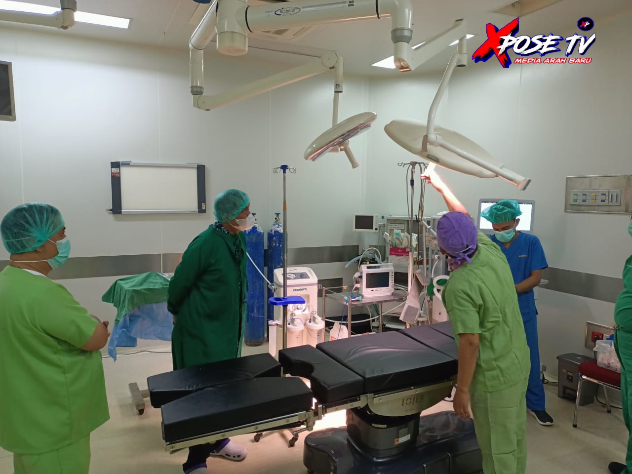 Menjaga sterilitas ruang operasi, Amran Mahmud ikut mengenakan baju kamar operasi lengkap dengan penutup kepala. Kepala daerah bergelar doktor ini beberapa saat menerima penjelasan dari petugas medis.